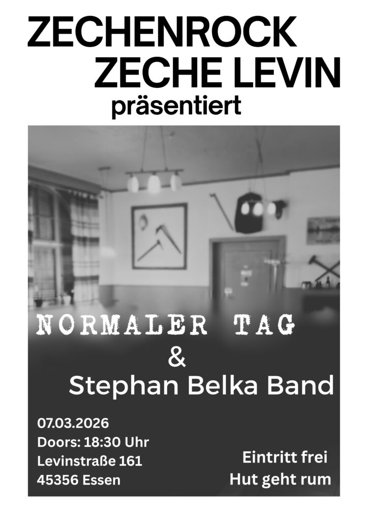 Aktuelles Termine : 07.03.2026 ZECHENROCK Zeche Levin Levinstraße 161 45356 Essen 18:30 Uhr Eintritt frei